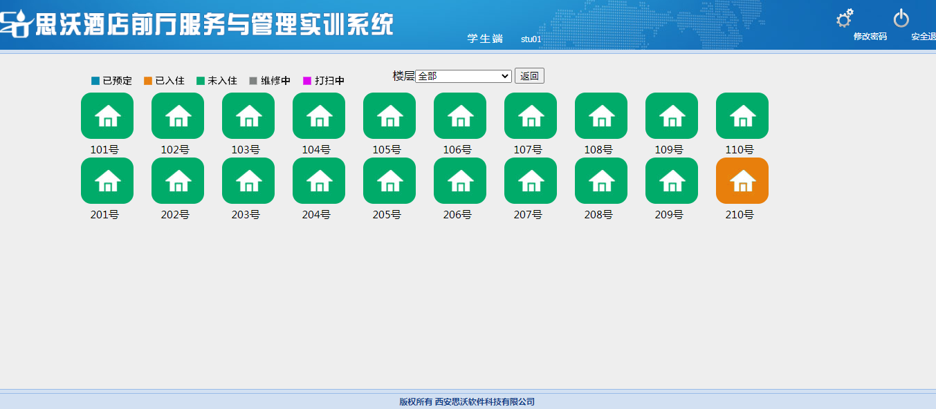 思沃(wo)酒(jiu)(jiu)店(dian)前(qian)(qian)廳(ting)(ting)(ting)服務(wu)與管理模擬實(shi)訓(xun)(xun)平臺系統以學(xue)(xue)(xue)(xue)生酒(jiu)(jiu)店(dian)前(qian)(qian)廳(ting)(ting)(ting)工作(zuo)崗位任務(wu)為(wei)基礎,以案例動畫結(jie)合的(de)模式開展情景模擬實(shi)訓(xun)(xun),學(xue)(xue)(xue)(xue)生可(ke)在該教學(xue)(xue)(xue)(xue)軟件設置的(de)虛擬酒(jiu)(jiu)店(dian)環境中,完(wan)成預定、入(ru)住(zhu)辦(ban)理、續住(zhu)、退房、換房、會(hui)(hui)員(yuan)管理、故障報修、投訴(su)處(chu)理、黑名(ming)單等相關案例任務(wu)的(de)操(cao)作(zuo)。該教學(xue)(xue)(xue)(xue)平臺軟件可(ke)以逼真(zhen)的(de)體驗(yan)實(shi)際酒(jiu)(jiu)店(dian)前(qian)(qian)廳(ting)(ting)(ting)工作(zuo)的(de)過程。本公司(si)為(wei)了更好滿足高校(xiao)的(de)教學(xue)(xue)(xue)(xue)需求,也會(hui)(hui)根據高校(xiao)的(de)需求提供酒(jiu)(jiu)店(dian)管理實(shi)訓(xun)(xun)室(shi)解決方案,