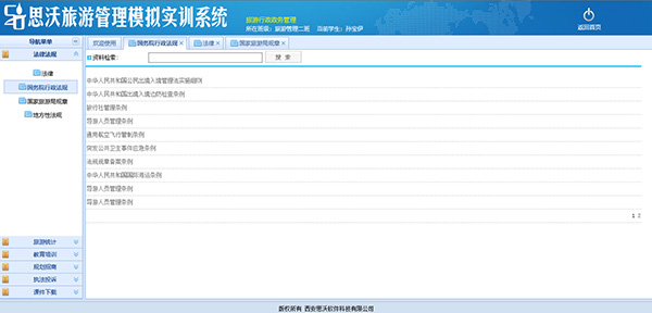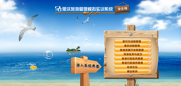 思沃旅(lv)游(you)(you)(you)管(guan)理(li)(li)模(mo)擬(ni)(ni)實訓系統(tong)(tong)分為(wei)模(mo)擬(ni)(ni)操作(zuo)(zuo)(zuo)和旅(lv)游(you)(you)(you)知識(shi)練習兩大模(mo)塊,涵(han)蓋旅(lv)行(xing)(xing)社(she)業(ye)的(de)(de)(de)(de)(de)分銷、操作(zuo)(zuo)(zuo)、結算、統(tong)(tong)計(ji)分析等(deng)各大業(ye)務(wu)模(mo)塊,該實訓教(jiao)學(xue)(xue)平臺軟件具備團(tuan)隊計(ji)劃、旅(lv)游(you)(you)(you)預(yu)訂(ding)(ding)(ding)、客(ke)房預(yu)訂(ding)(ding)(ding)、機(ji)票(piao)預(yu)訂(ding)(ding)(ding)、景點門(men)票(piao)預(yu)訂(ding)(ding)(ding)、團(tuan)餐預(yu)訂(ding)(ding)(ding)、車(che)輛預(yu)訂(ding)(ding)(ding)、收付(fu)款管(guan)理(li)(li)、供(gong)應(ying)商、團(tuan)隊客(ke)戶、VIP散客(ke)管(guan)理(li)(li)等(deng)功(gong)能。從旅(lv)行(xing)(xing)社(she)經營(ying)(ying)管(guan)理(li)(li)、酒店經營(ying)(ying)管(guan)理(li)(li)、旅(lv)游(you)(you)(you)資源開(kai)發(fa)與(yu)管(guan)理(li)(li)、旅(lv)游(you)(you)(you)行(xing)(xing)政管(guan)理(li)(li)、導游(you)(you)(you)實務(wu)與(yu)技巧五個(ge)方面(mian)讓學(xue)(xue)生參與(yu)旅(lv)游(you)(you)(you)管(guan)理(li)(li)的(de)(de)(de)(de)(de)模(mo)擬(ni)(ni)操作(zuo)(zuo)(zuo),每個(ge)方面(mian)又細分為(wei)實際流程中(zhong)涉及的(de)(de)(de)(de)(de)每個(ge)細節,因(yin)此(ci),學(xue)(xue)生可(ke)以從中(zhong)學(xue)(xue)習到旅(lv)游(you)(you)(you)管(guan)理(li)(li)的(de)(de)(de)(de)(de)全面(mian)的(de)(de)(de)(de)(de)操作(zuo)(zuo)(zuo)流程。此(ci)外,軟件中(zhong)教(jiao)師(shi)端對應(ying)的(de)(de)(de)(de)(de)實驗設置(zhi),讓教(jiao)師(shi)可(ke)以方便地為(wei)學(xue)(xue)生設置(zhi)實驗的(de)(de)(de)(de)(de)不(bu)同(tong)因(yin)素,同(tong)時,教(jiao)師(shi)還可(ke)以查看學(xue)(xue)生的(de)(de)(de)(de)(de)操作(zuo)(zuo)(zuo)結果(guo),從而能夠對學(xue)(xue)生的(de)(de)(de)(de)(de)實驗進(jin)行(xing)(xing)評價(jia)。教(jiao)學(xue)(xue)軟件系統(tong)(tong)的(de)(de)(de)(de)(de)使用可(ke)以提高學(xue)(xue)生的(de)(de)(de)(de)(de)學(xue)(xue)習興(xing)趣,同(tong)時也為(wei)教(jiao)師(shi)減輕工作(zuo)(zuo)(zuo)負擔。本公司為(wei)了(le)更好滿足高校(xiao)的(de)(de)(de)(de)(de)教(jiao)學(xue)(xue)需(xu)(xu)求,會根據高校(xiao)的(de)(de)(de)(de)(de)需(xu)(xu)求提供(gong)旅(lv)游(you)(you)(you)管(guan)理(li)(li)實訓室(shi)解決(jue)方案。
