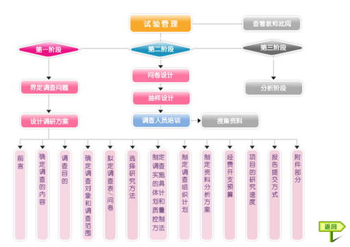 學(xue)生以教師設置的實(shi)驗要(yao)求為(wei)目標,以市場(chang)調(diao)查公(gong)司總(zong)經理的身份負責市場(chang)調(diao)查的整個過(guo)程,根據(ju)系統(tong)的操作向(xiang)導按(an)步驟、階段(duan)性完成實(shi)驗任(ren)務。確定調(diao)研課題,設計調(diao)研方(fang)案、調(diao)研問卷、抽樣方(fang)案,培訓(xun)調(diao)查人(ren)員,搜集(ji)并分析資料。