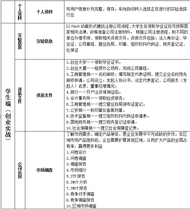 學(xue)生端模擬現實創業(ye)的步驟及(ji)相關流程(cheng)進行創業(ye)實驗。